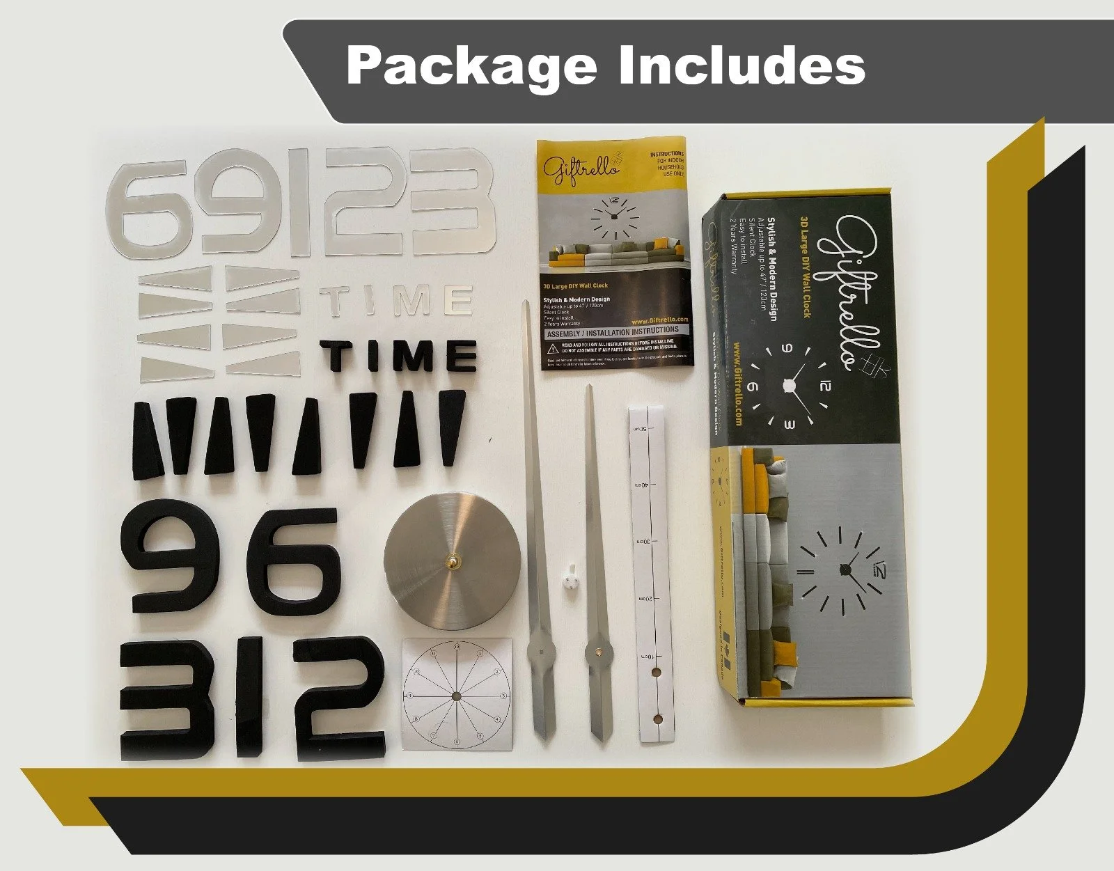 Make a bold statement on your wall with this modern frameless DIY wall clock, featuring a sleek, creative typography design. With its oversized layout and completely silent quartz movement, this clock is both a stylish home decor piece and a functional timekeeper.